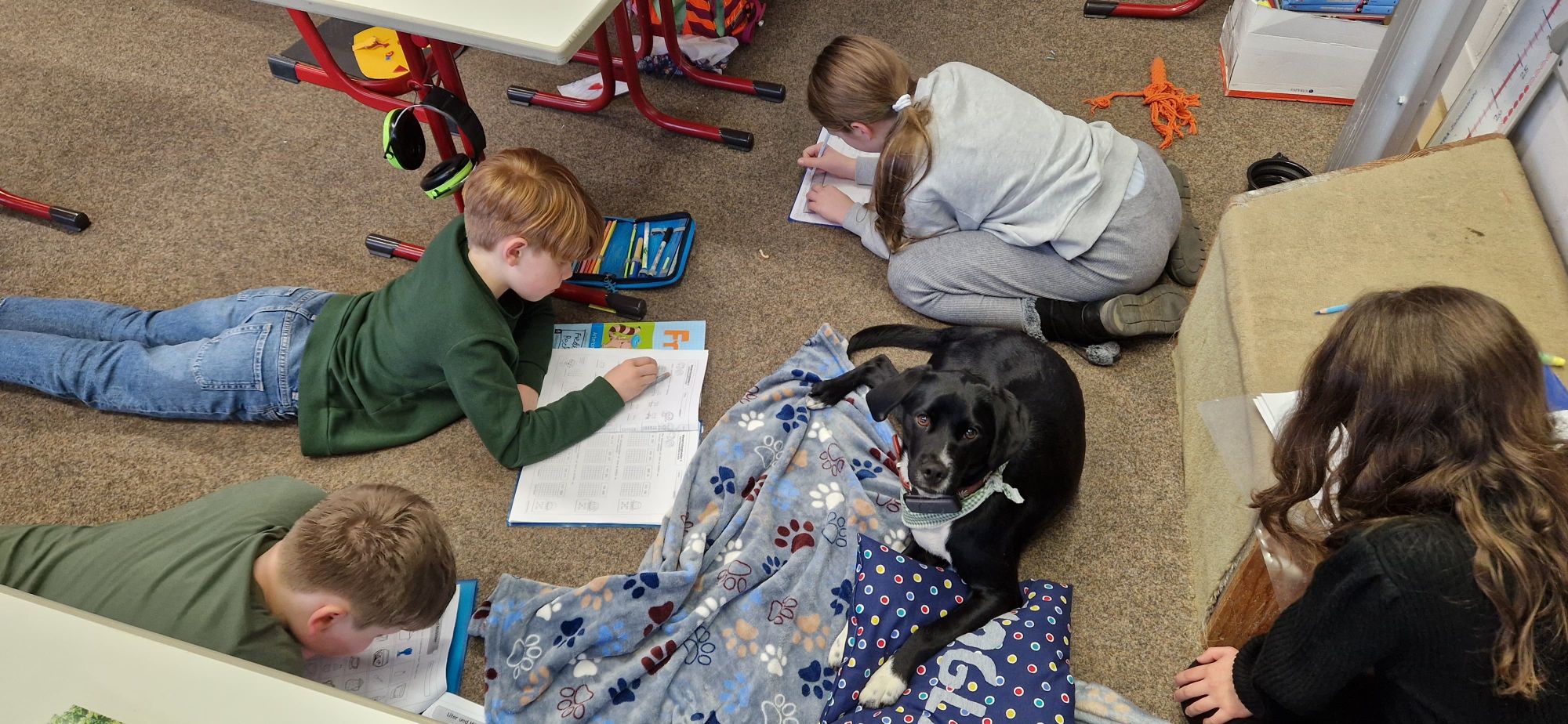 Seit einigen Monaten bereichert unser Schulhund Mogli den Schulalltag an der Adolf-Kussmaulschule. Der freundliche Vierbeiner unterstützt die Kinder besonders beim Lernen von Inhalten in den Fächern Deutsch und Mathematik. Durch seine Anwesenheit wird nicht nur das Lernen erleichtert, sondern auch die Motivation der Schülerinnen und Schüler gesteigert.