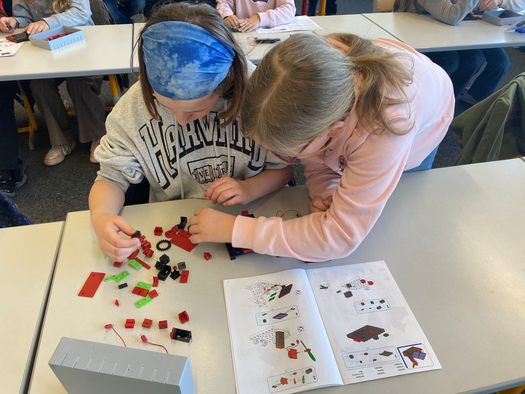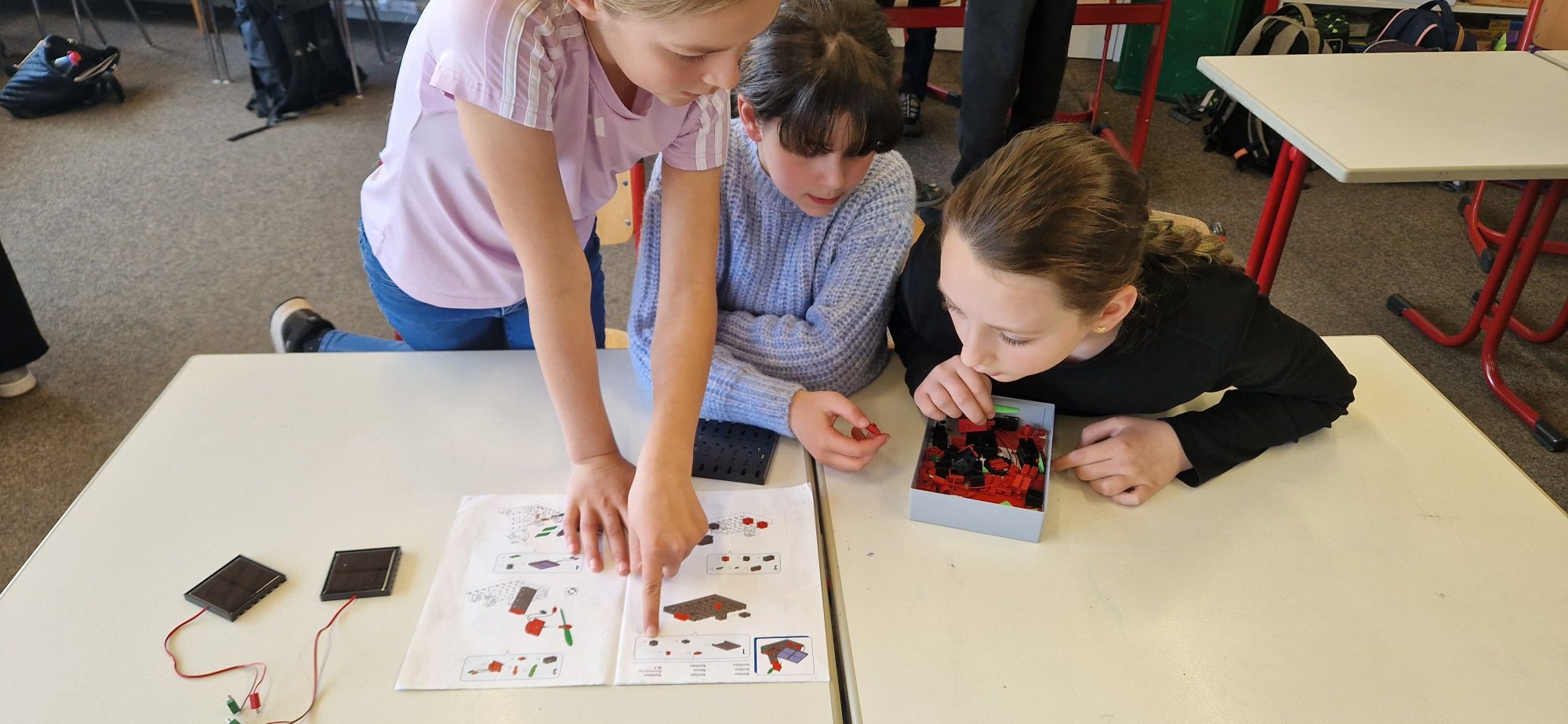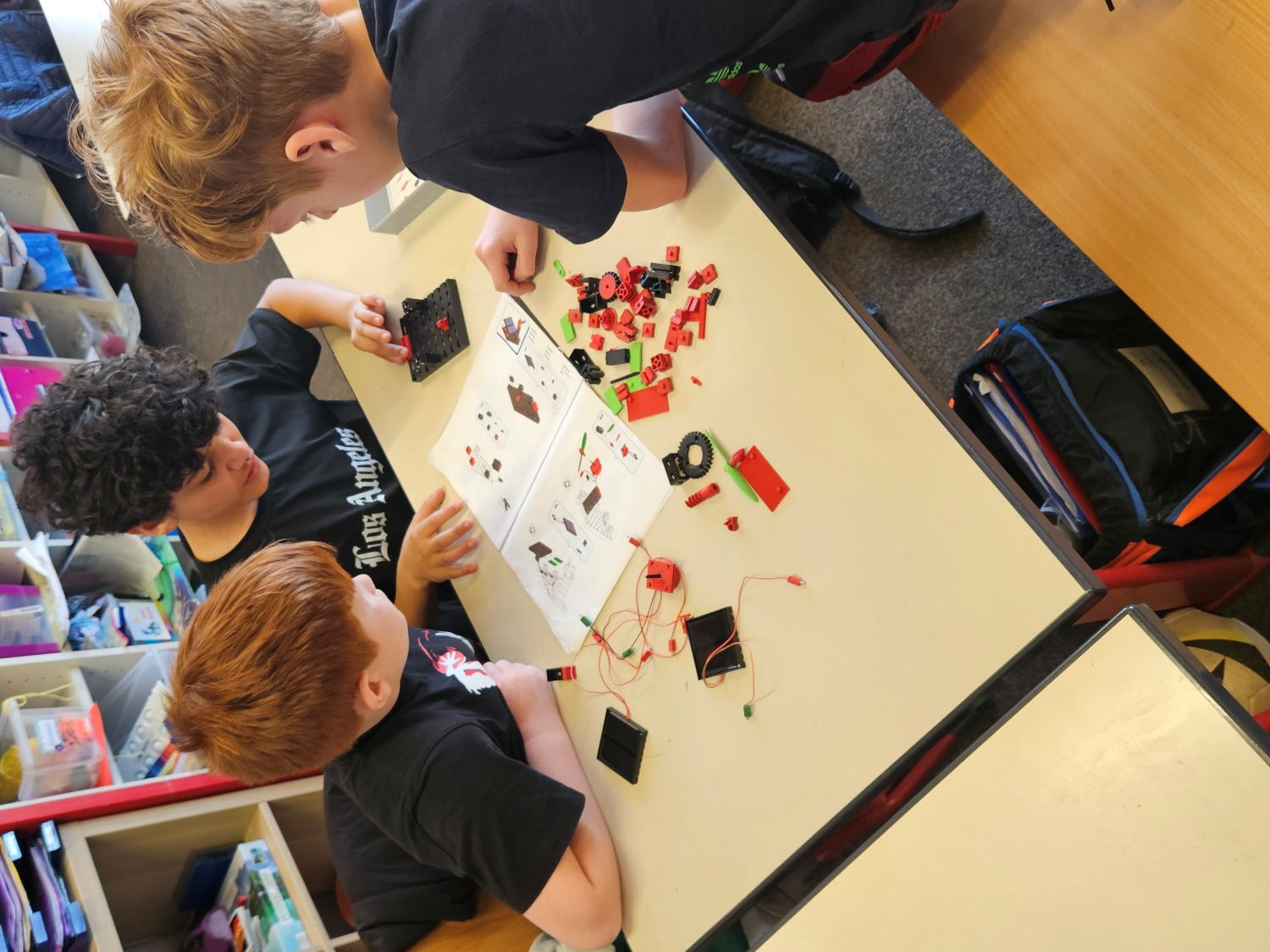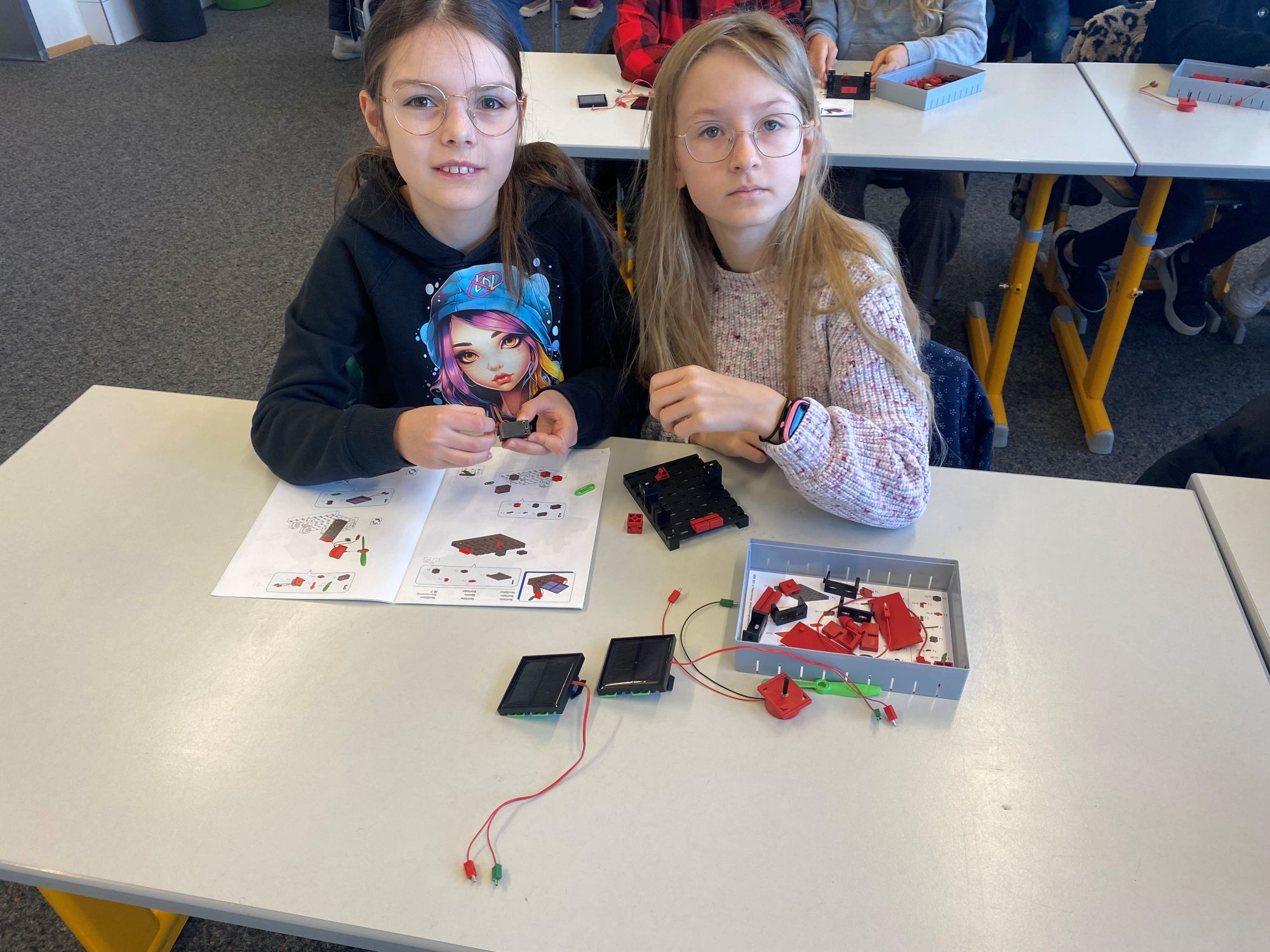 Nach der theoretischen Einführung ging es dann an die praktische Umsetzung. Mit Hilfe von „Fischer Technik“ – einem Bausatz, der es ermöglicht, verschiedene Modelle zu erstellen – bauten die Kinder selbstständig verschiedene Modelle, die mit Solarpanelen ausgestattet waren. Diese Modelle verdeutlichten anschaulich, wie Solarenergie funktioniert und welche Möglichkeiten sie in der heutigen Zeit bietet, um nachhaltige Energie zu erzeugen.