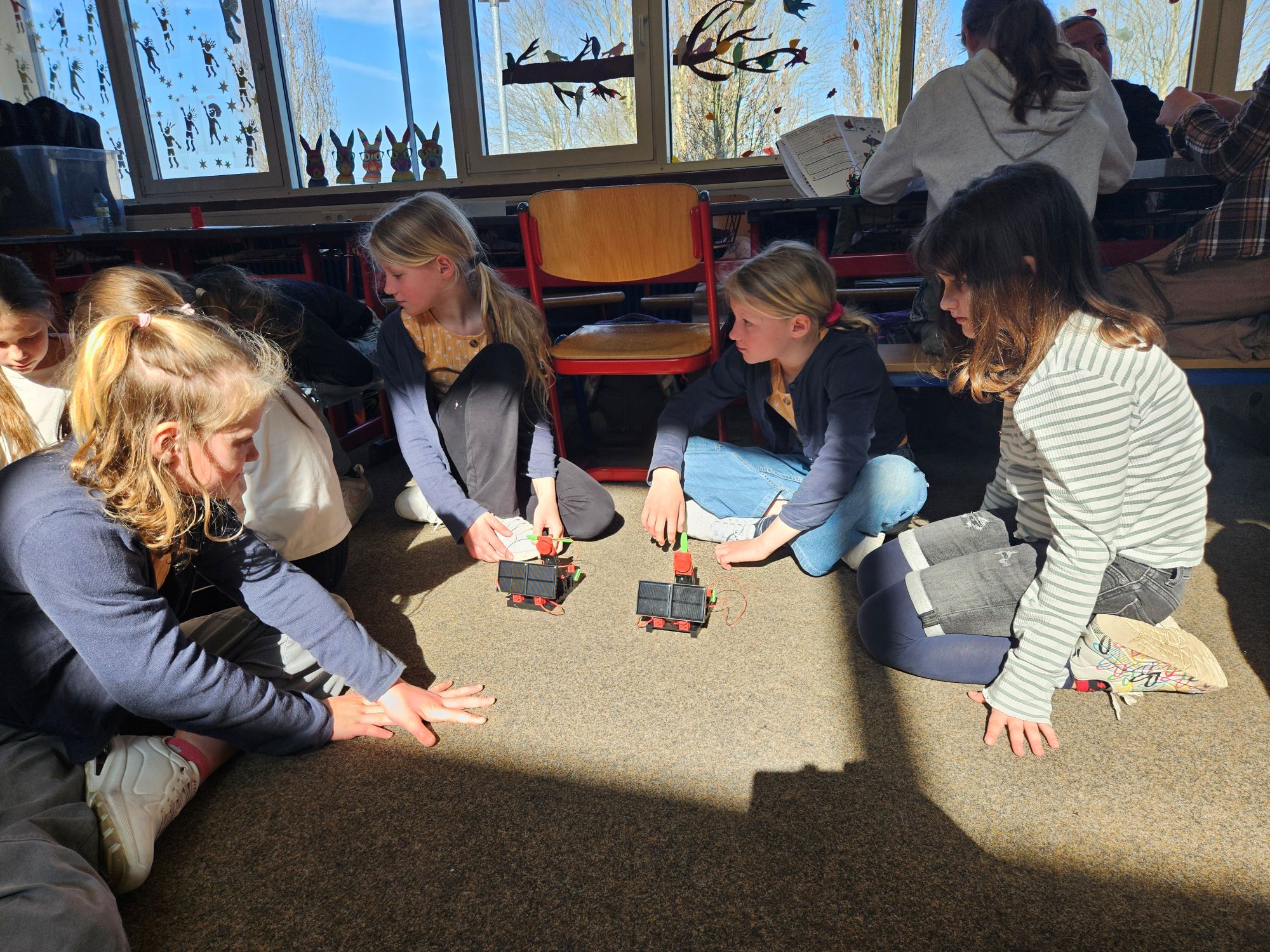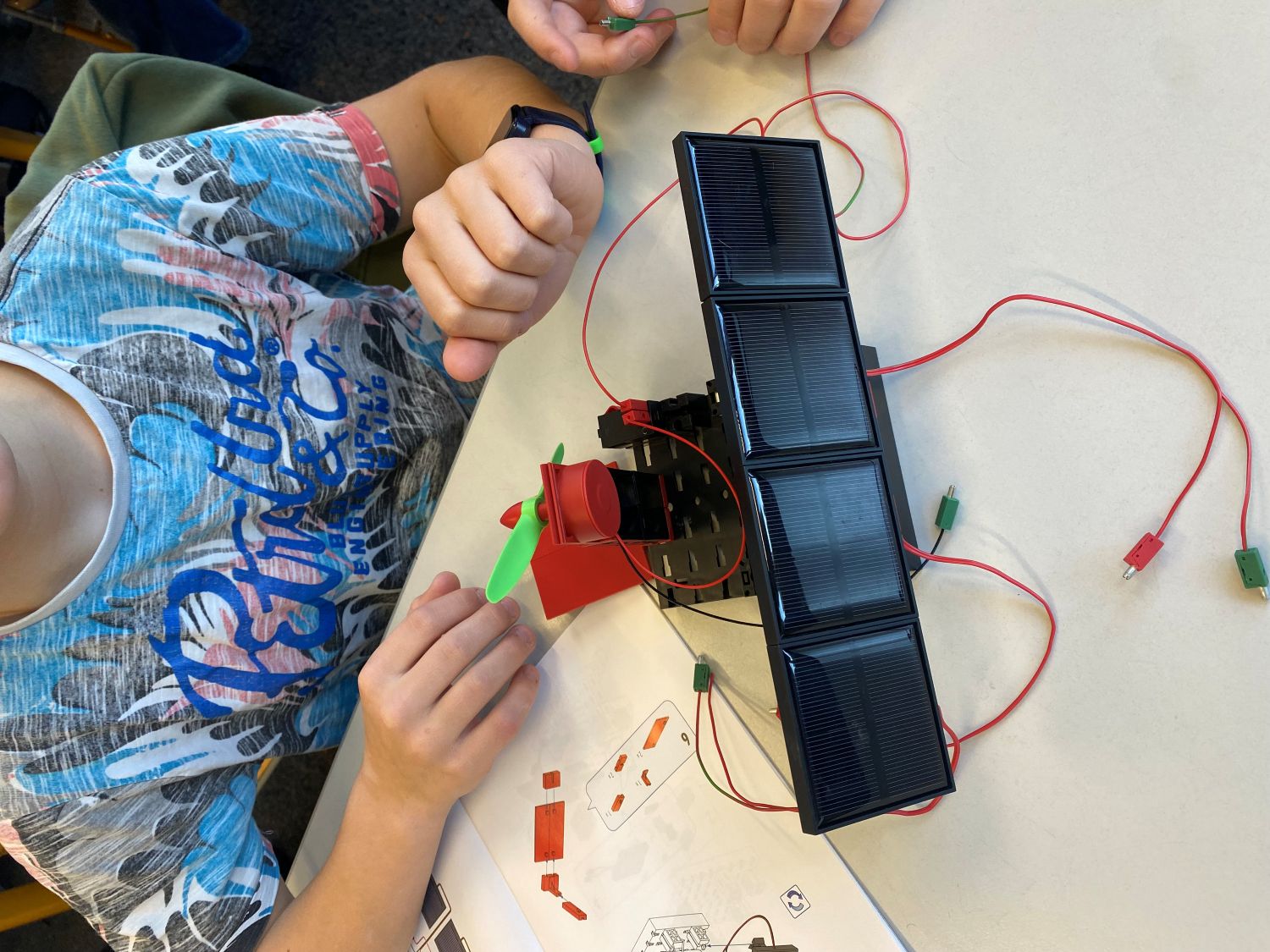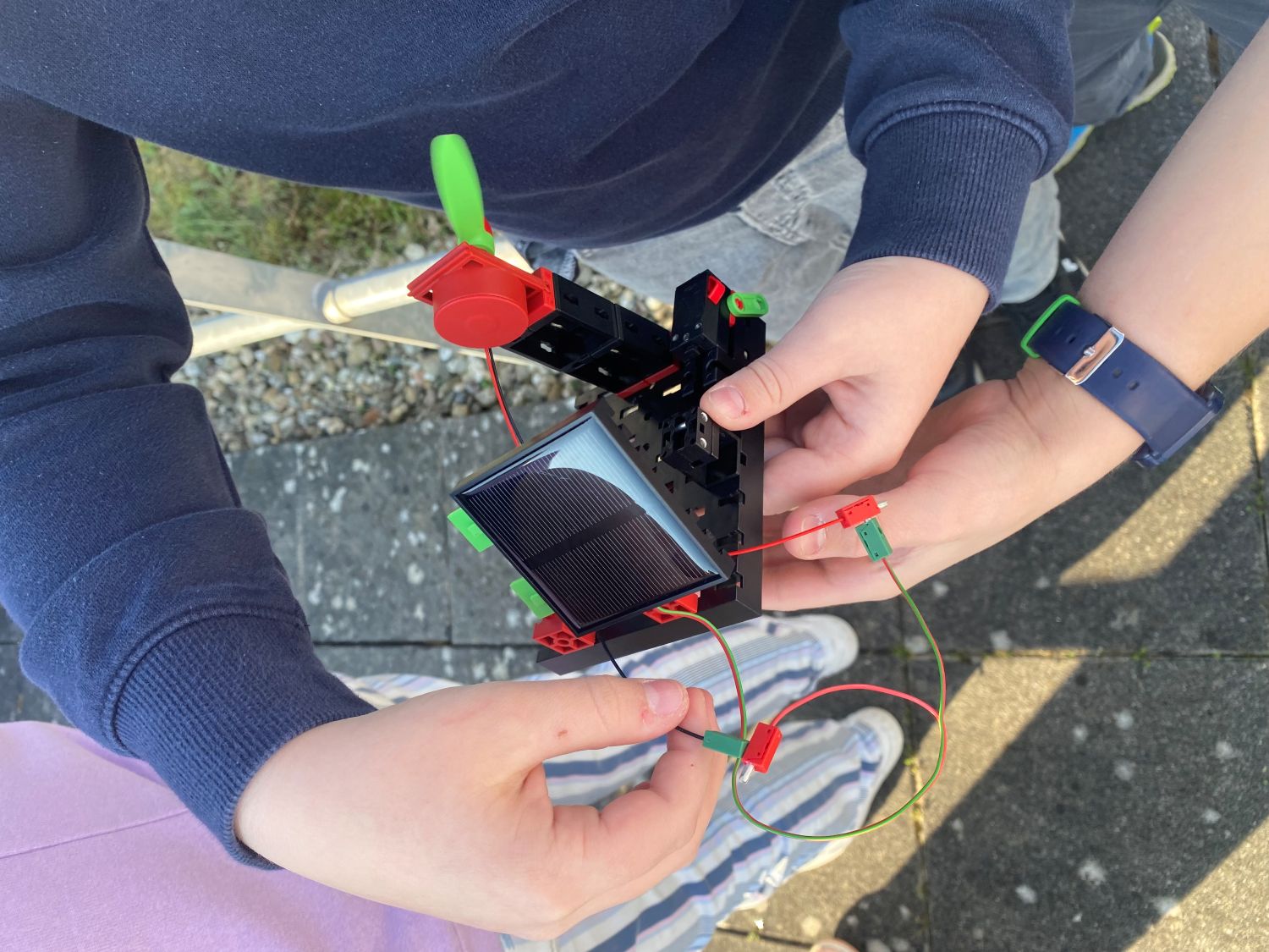 Nach dem Bau der Modelle gab es die Gelegenheit, diese direkt auszuprobieren. Sie konnten sehen, wie die Solarpanelen mit der Energie der Sonne die Modelle antrieben und zum Laufen brachten. Das Experimentieren und Ausprobieren machten den Kindern nicht nur Spaß, sondern vertiefte ihr Verständnis für erneuerbare Energien und deren Anwendung in der Praxis.