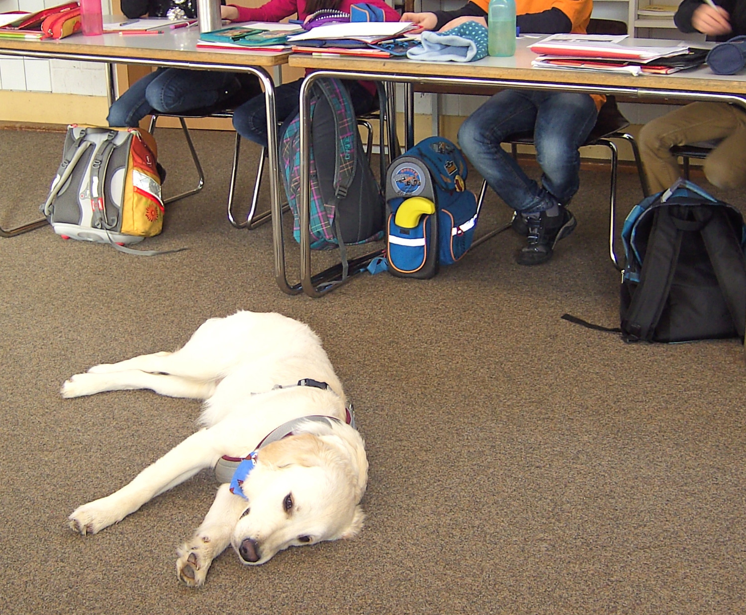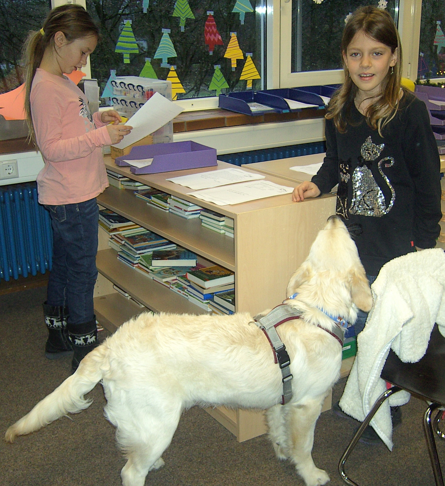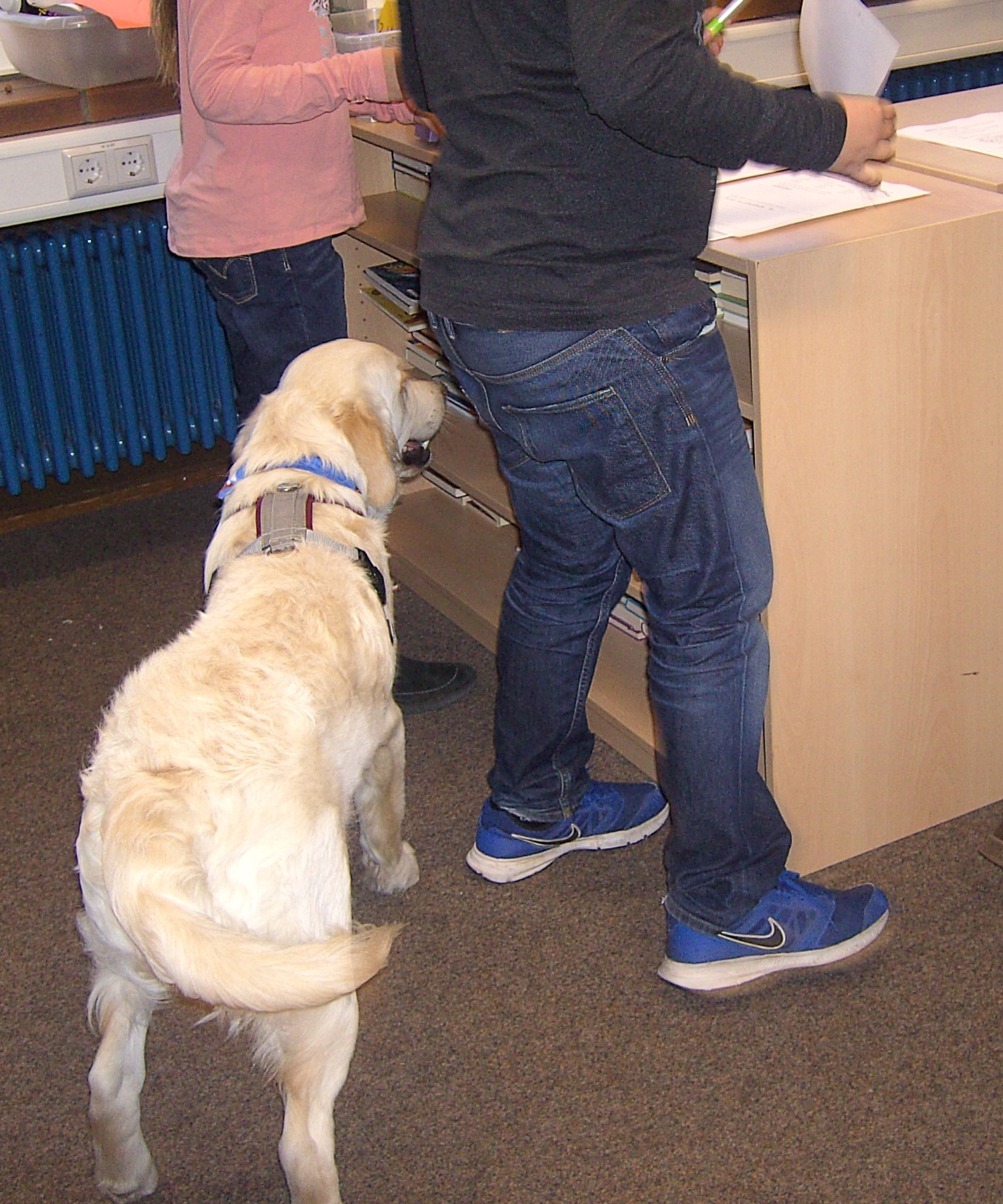 Auf den Fotos sieht man ganz schön, dass es mir in der Schule sehr gefällt: Ich wedle immerzu mit dem Schwanz.