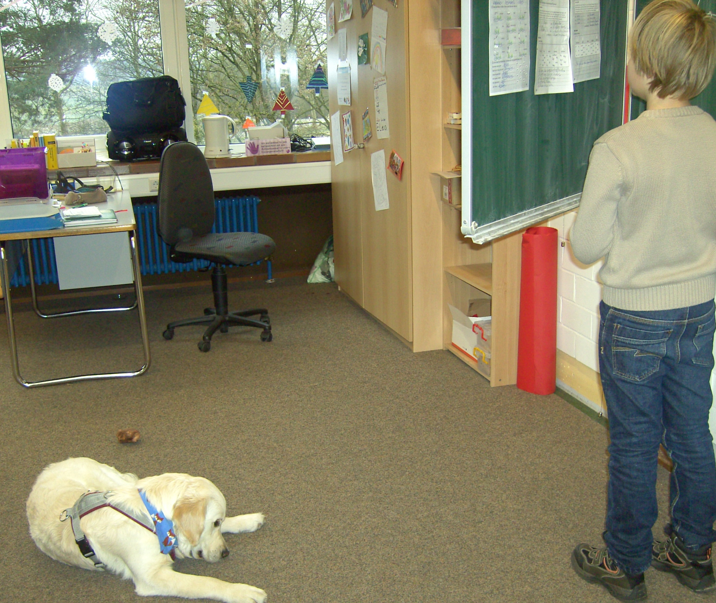 Ab und zu habe ich dann auch überwacht, dass die Kinder alle Ergebnisse auch gut kontrollieren oder vorzeigen. Das ist ganz schön anstrengend. Immer wieder muss man warten, bis man dran ist. Das habe ich ganz schnell erkannt und für Streicheleinheit genutzt.