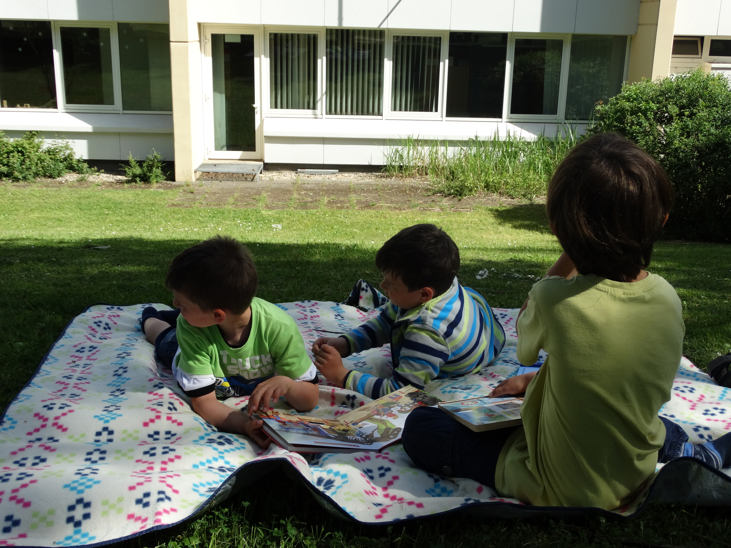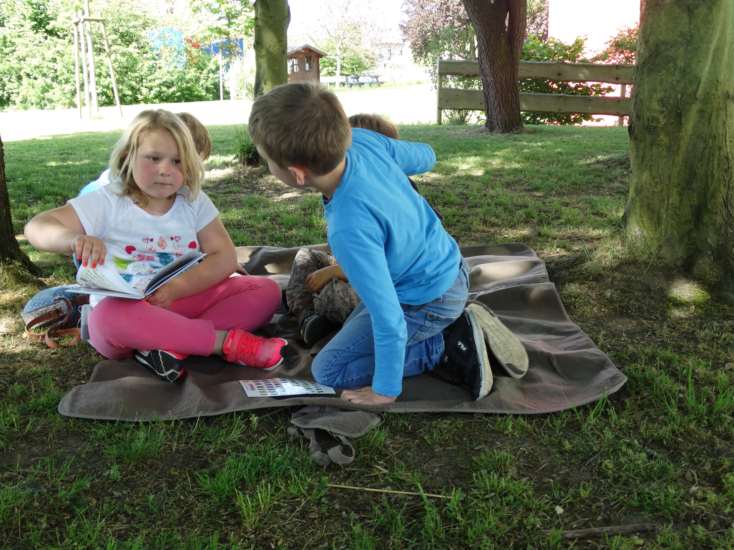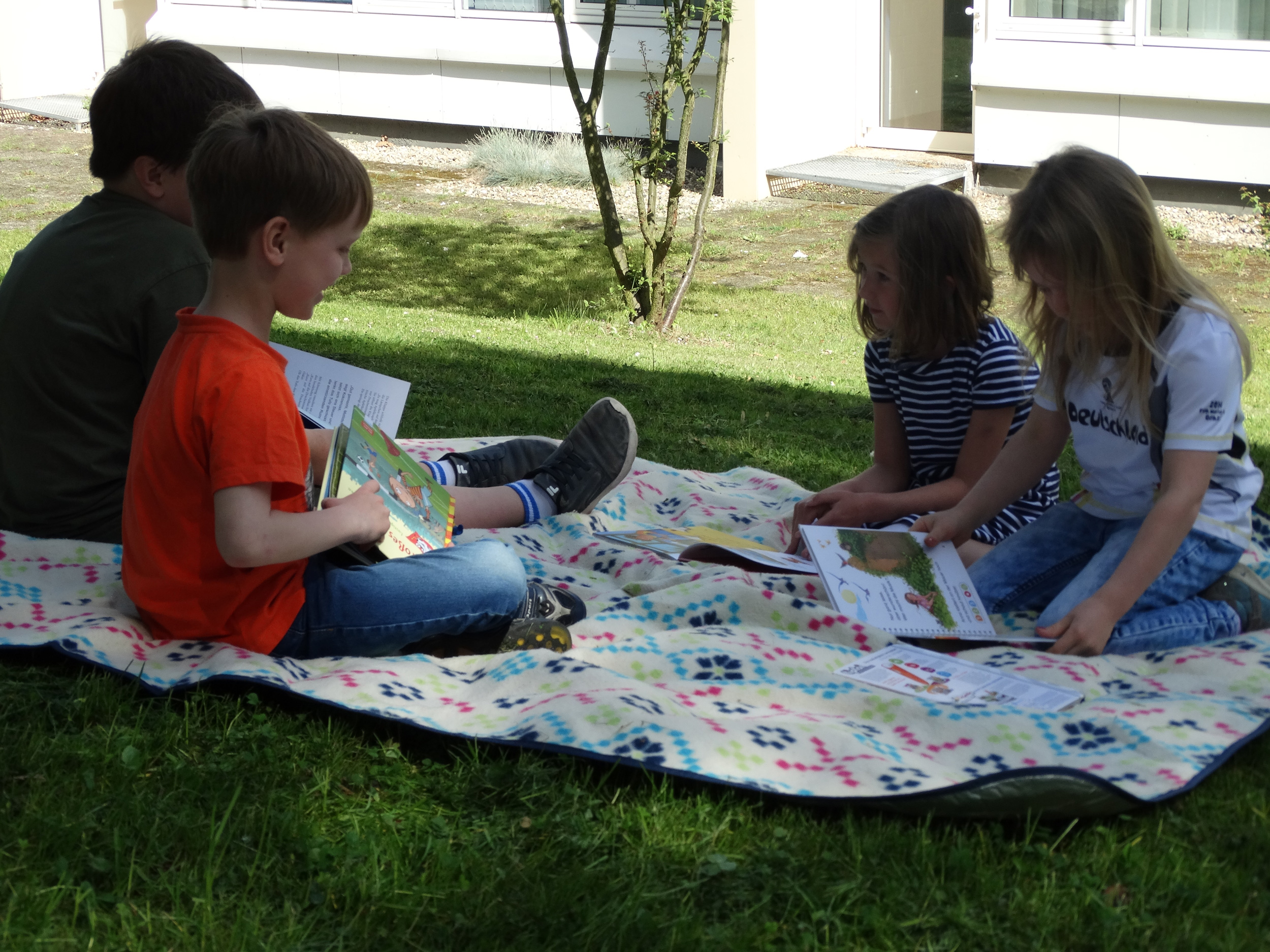 Da sie das so toll gemacht haben und auch das Wetter in der letzten Zeit mitgespielt hat, haben wir dann unsere Lesestunde nach draußen verlegt.