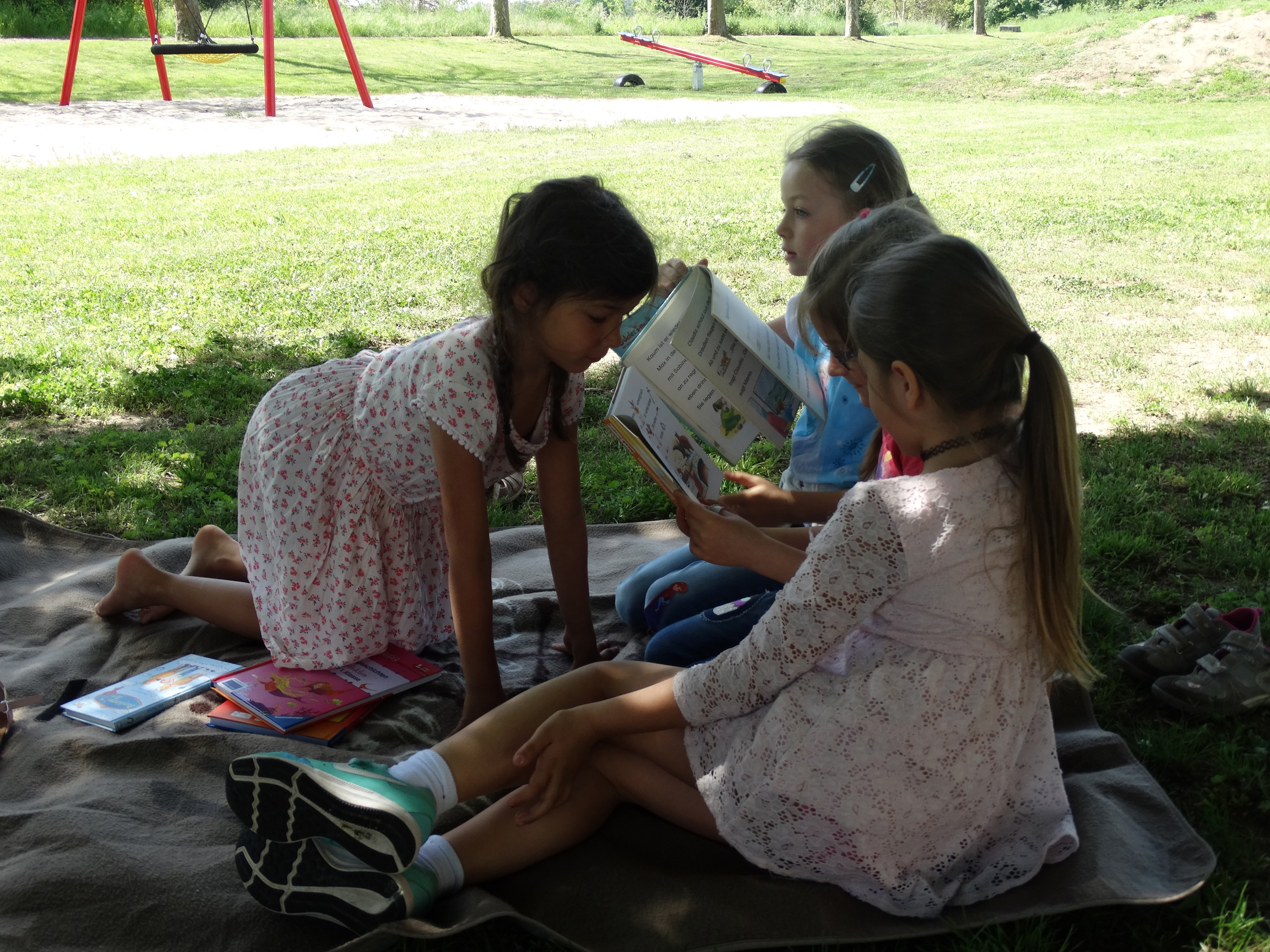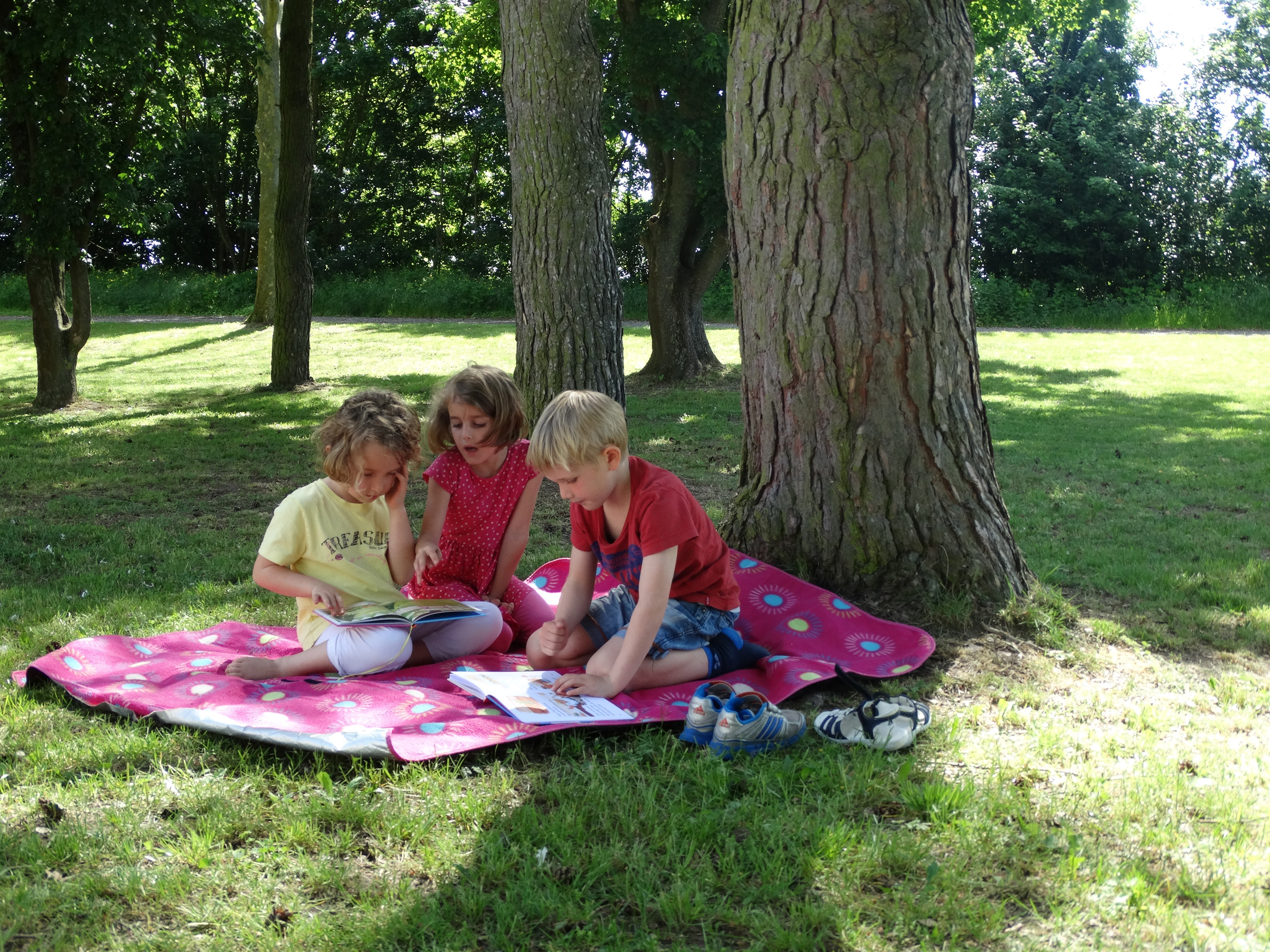 Wir haben ganz einfach ein paar Decken und gute Bücher gepackt und es uns auf der Wiese gemütlich gemacht. Das war für alle ein großer Spaß: