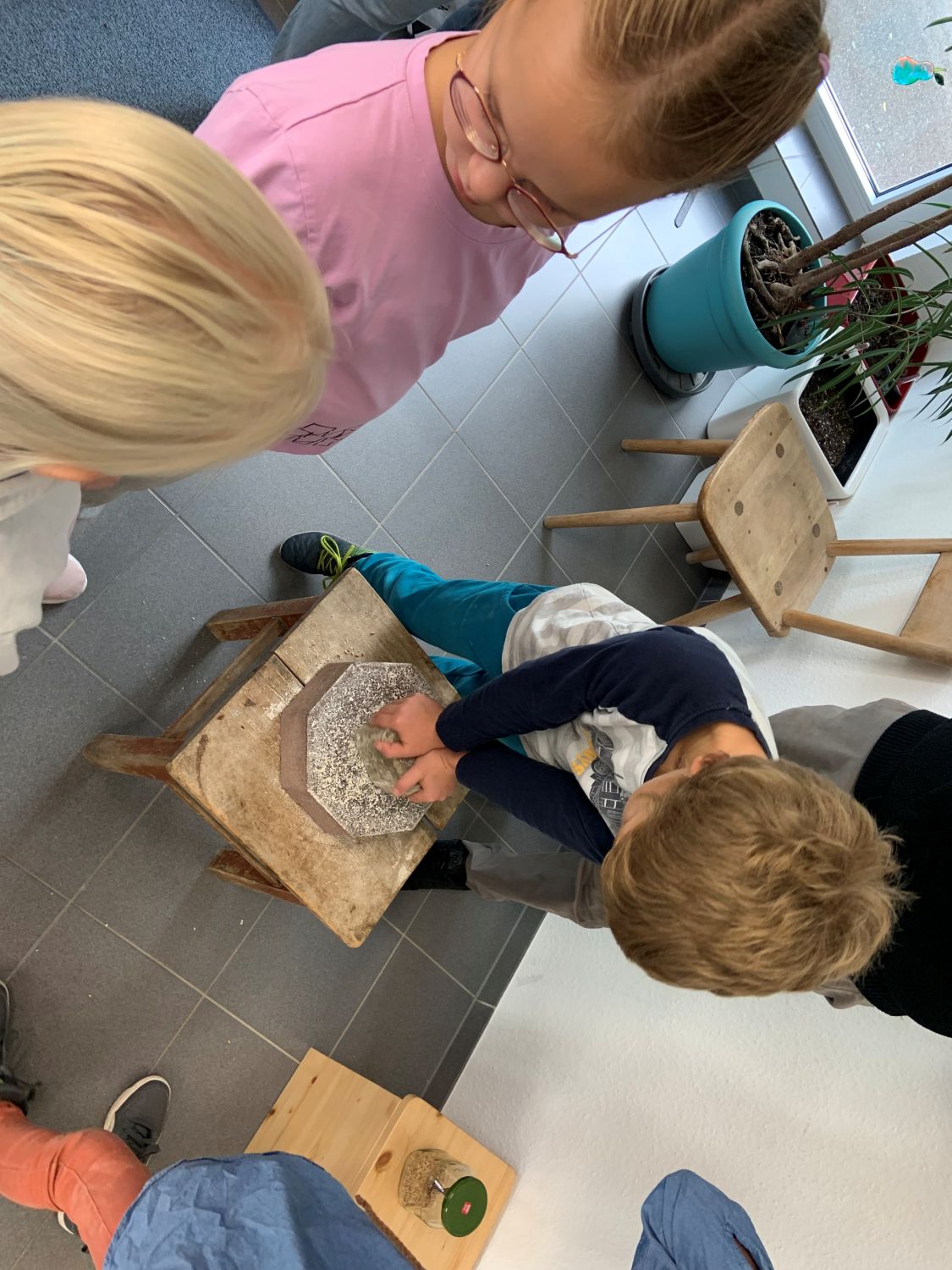 Zu Beginn des Besuchs erhielten die Kinder eine Einführung in die Vielfalt der Getreidearten. Anschließend durften die SchülerInnen an verschiedenen Stationen eigenständig arbeiten, ihr Wissen anwenden und erweitern. Einer der Höhepunkte war die Möglichkeit, an einem Mahlstein selbst Mehl aus Körnern herzustellen. Diese praktische Erfahrung war für die SchülerInnen besonders eindrucksvoll.