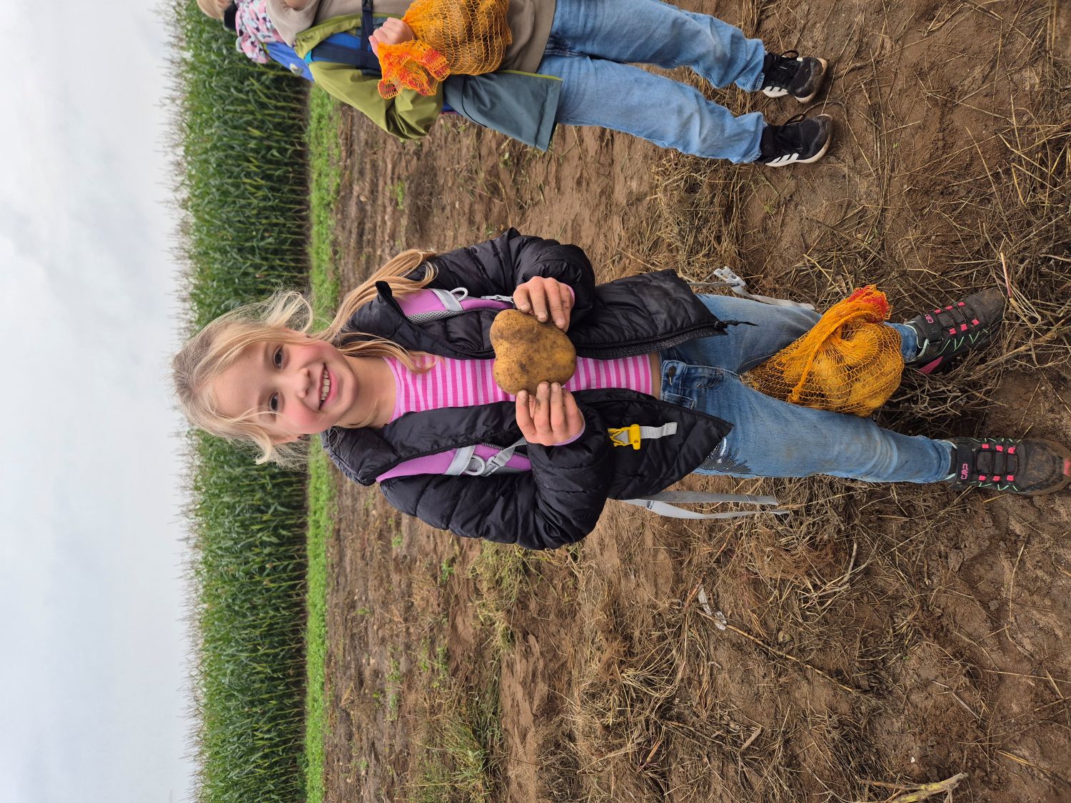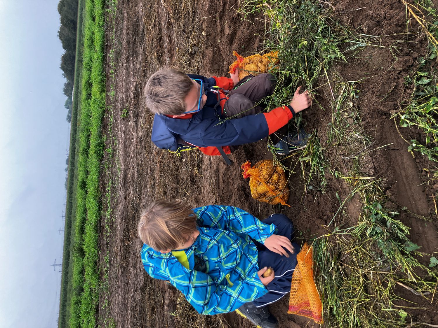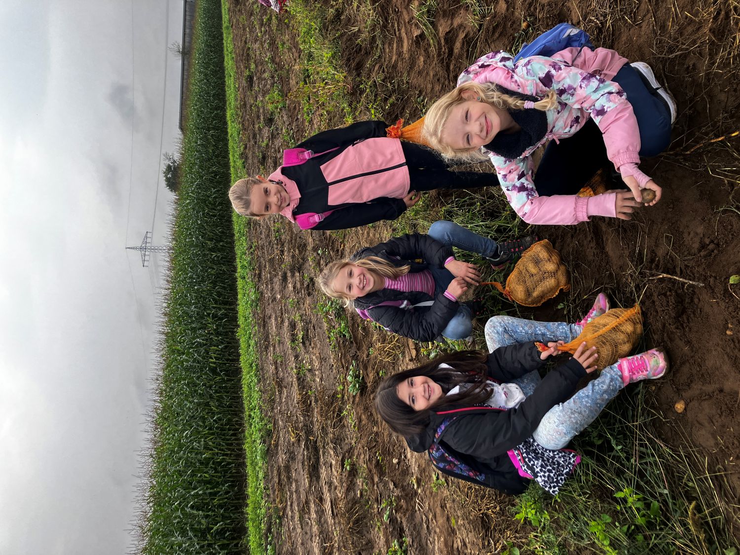 Anschließend durften wir selbst tätig und zu kleinen „Kartoffelbauern“ werden. Wie früher wurde mit den Händen gegraben, gesucht und gesammelt. Schnell füllten sich die ersten Säcke, und am Ende hatte jeder von uns eine große Portion selbst geernteter Kartoffeln im Gepäck.