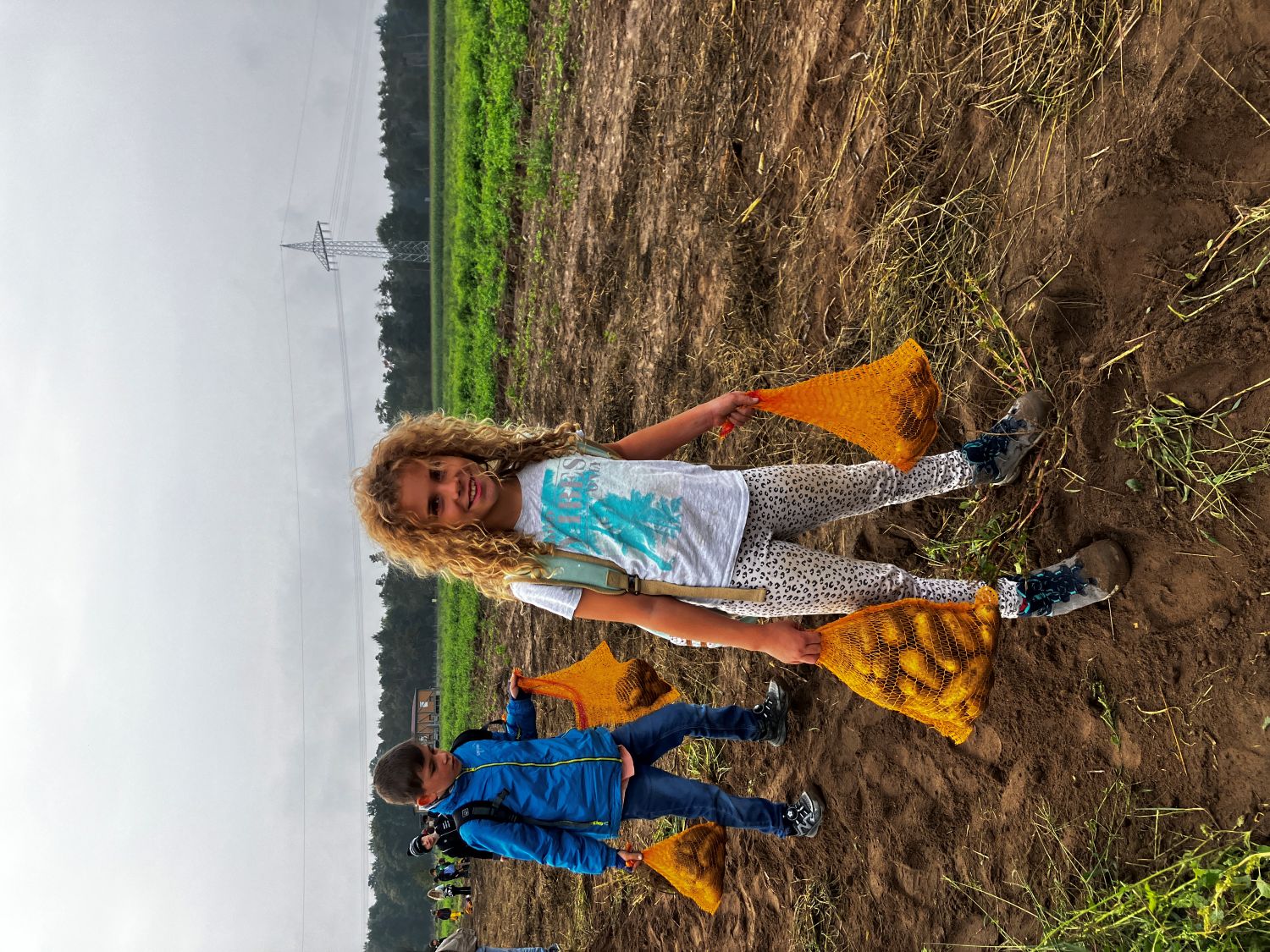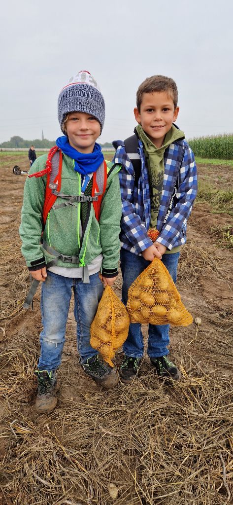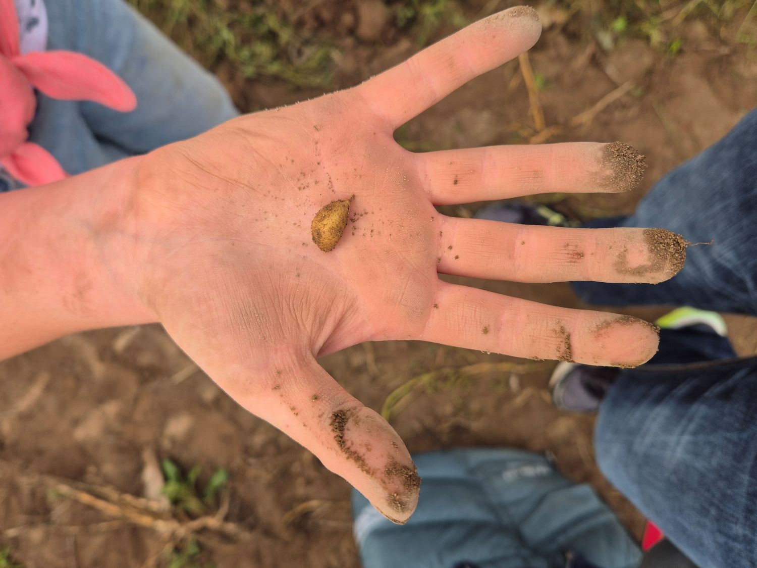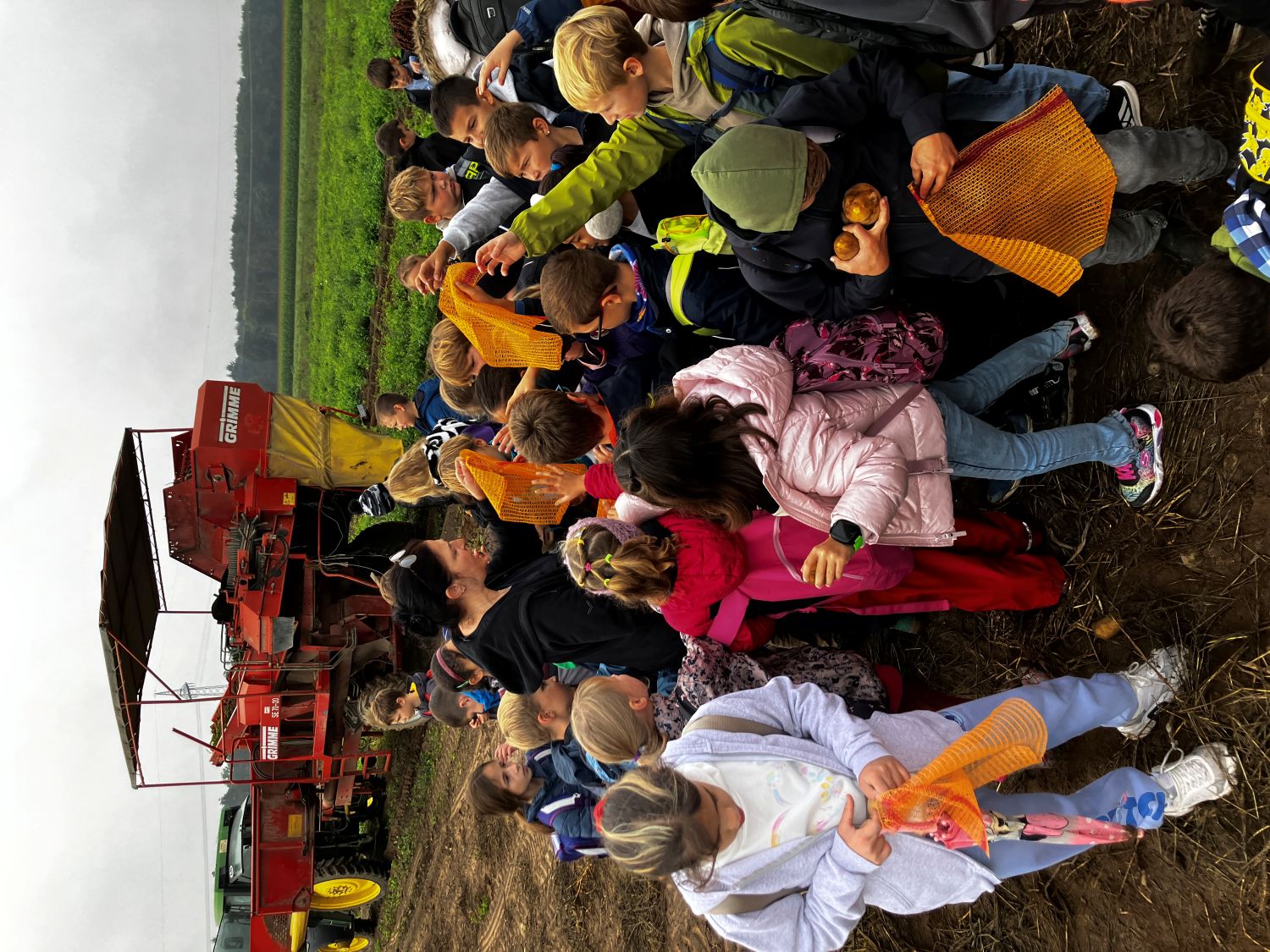 Anschließend durften wir selbst tätig und zu kleinen „Kartoffelbauern“ werden. Wie früher wurde mit den Händen gegraben, gesucht und gesammelt. Schnell füllten sich die ersten Säcke, und am Ende hatte jeder von uns eine große Portion selbst geernteter Kartoffeln im Gepäck.