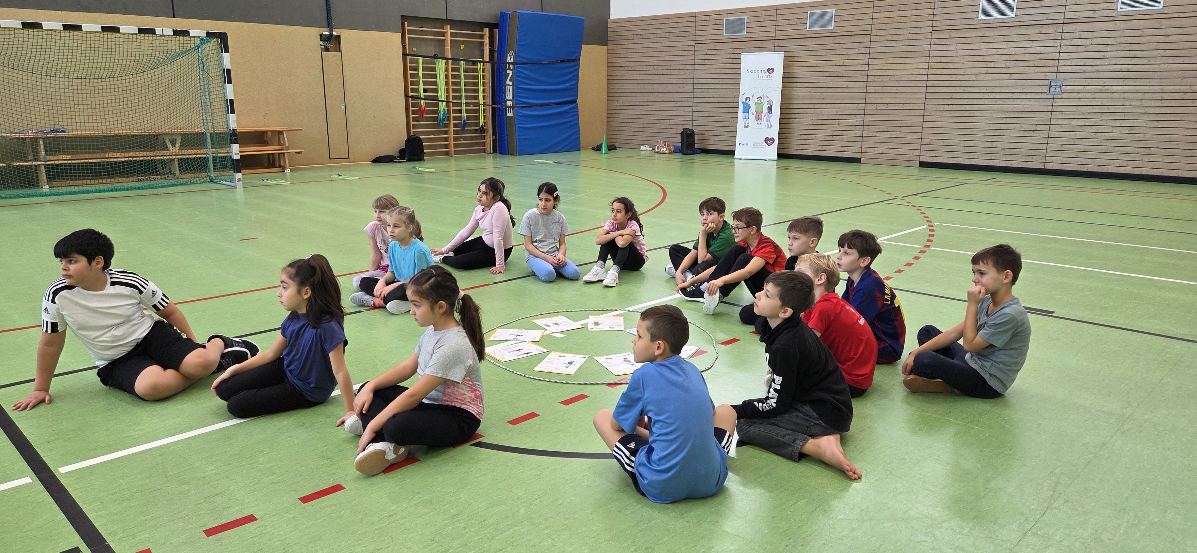 Die Klasse 3b durfte am Workshop „Skipping Hearts“ der Deutschen Herzstiftung teilnehmen. Dabei drehte sich alles um Bewegung, Seilspringen und Spaß.